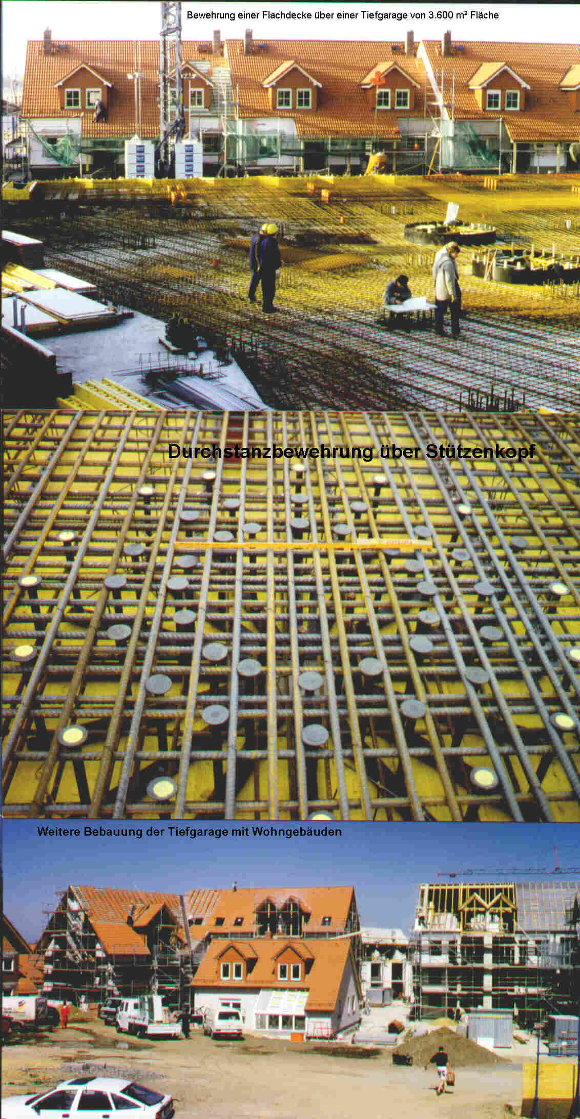 Decke in Spannbetonbauweise eingebaut. Die übrigen